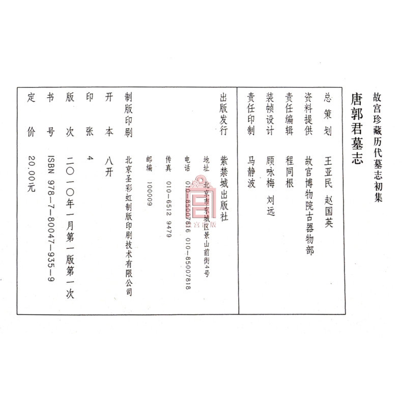 Tang Guojun',唐郭君墓志 故宫珍藏历代墓志初集