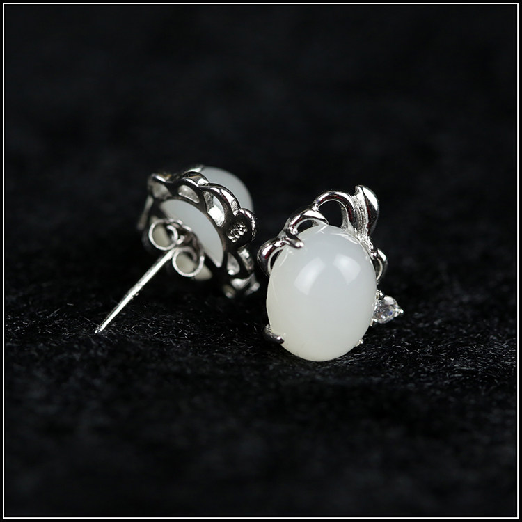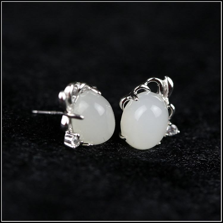 Xinjiang and fields Goat Grease Jade Earrings BeyJade Earrings Silver Inlay Ears PLEASE NOTE KIND