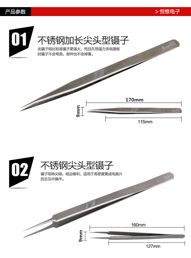 Tcard precision stainless steel tweezers Aaa-14 12 lengthened thickened straight tip tweezers electronic repair welding tool