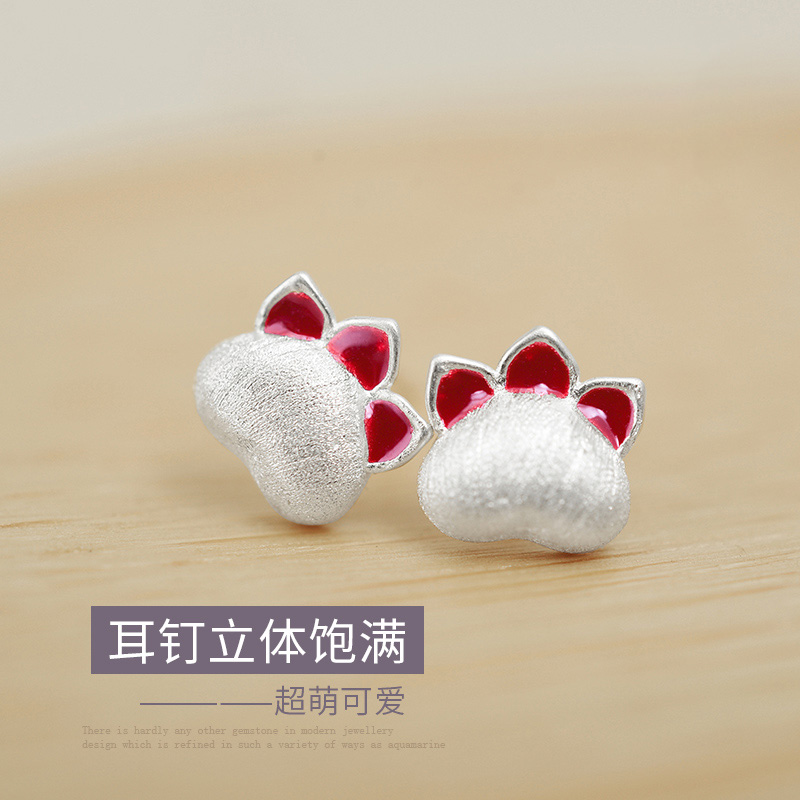 Gorgeous silver jewelry Japan and South Korea simple personality cute cat ear needle Feminine temperament fresh hypoallergenic 925 sterling silver earrings
