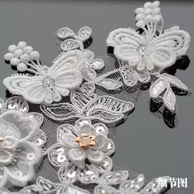White small butterfly beaded lace Flower cloth stickers Accessories Handmade bridal hair accessories Wedding skirt diy accessories