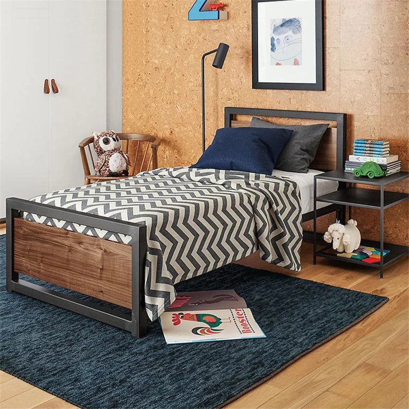 American Single Bed Loft Double Wooden Bed 1 m 2 Child Bed Loft Apartment Modern Simple Iron Bed