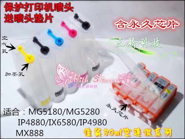 500ML IP7280 empty continuous ink supply system with chip 500ML IX6580 empty continuous supply ink system with chip 500ML IP4980 empty continuous supply
