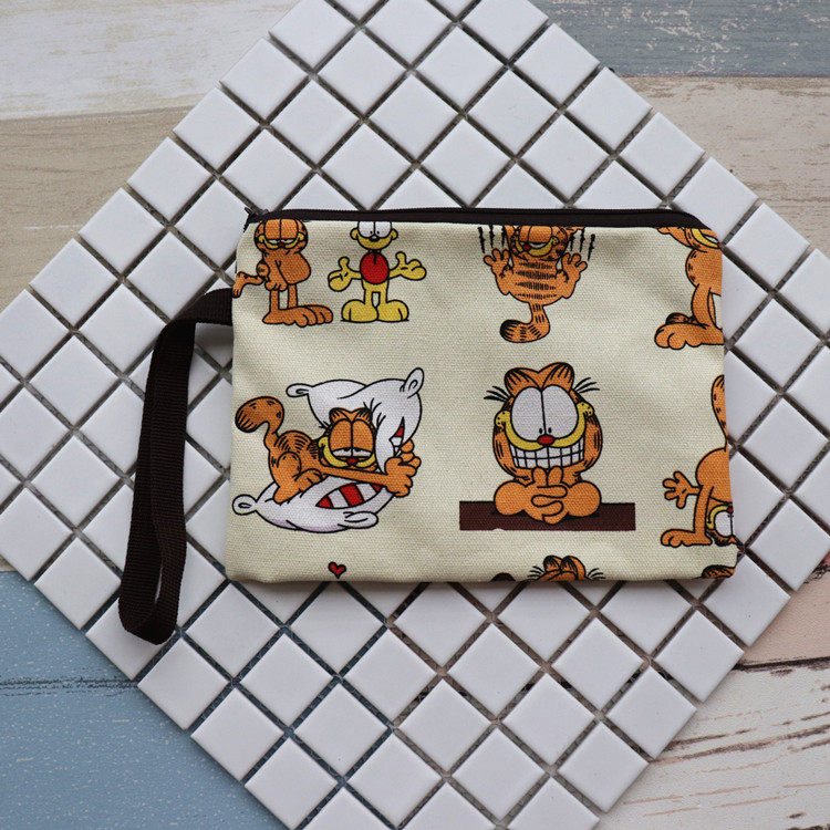 Canvas Cute Personality Cartoon Garfi Cat Spong Phone with wristbag Changkeychain bag wallet