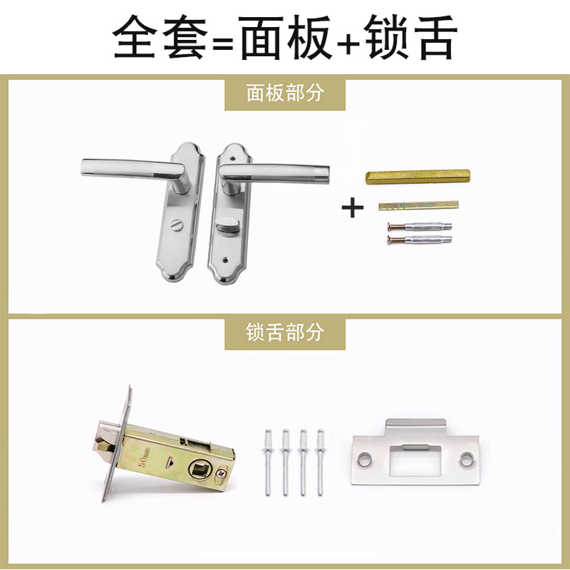 Stainless steel bathroom door lock keyless indoor bedroom toilet Aluminum alloy single tongue toilet universal handle