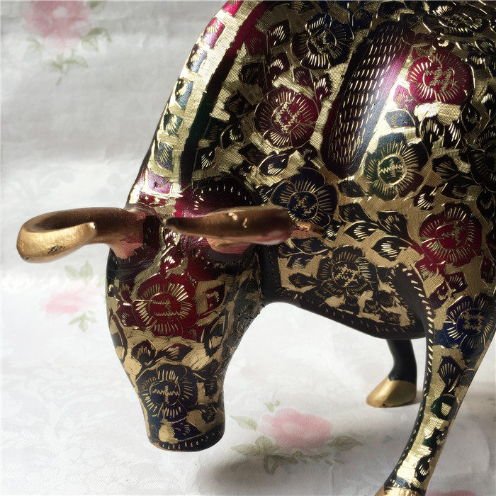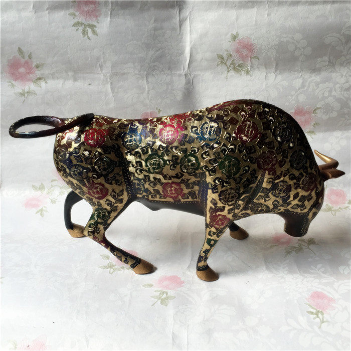 Imported Pakistani handicraft bronze bronze carving lacquer paint bullfighting bull copper bull copper home accessories ornaments