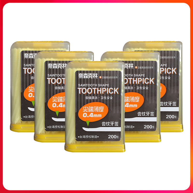 Nassenklin tooth tooth 200*5 boxes of thin flat plastic household hotel disposable tooth