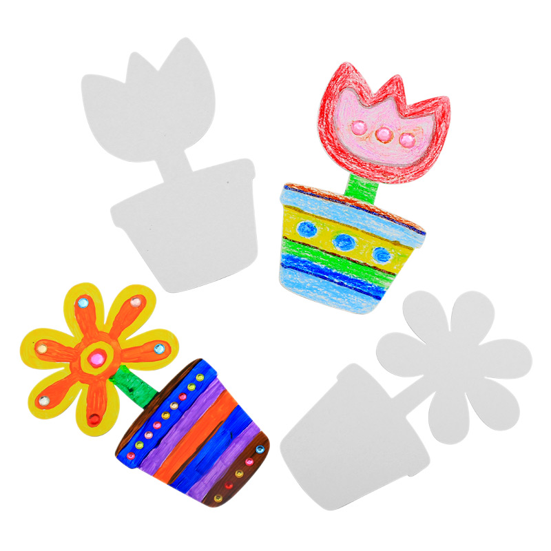 20 white cardboard flowers 20 white cardboard butterflies 20 white cardboard dinosaurs 20 white cardboard dolls 12 white cardboard animals 24 white cardboard traffic 25 white cardboard vases 10 white cardboard holes