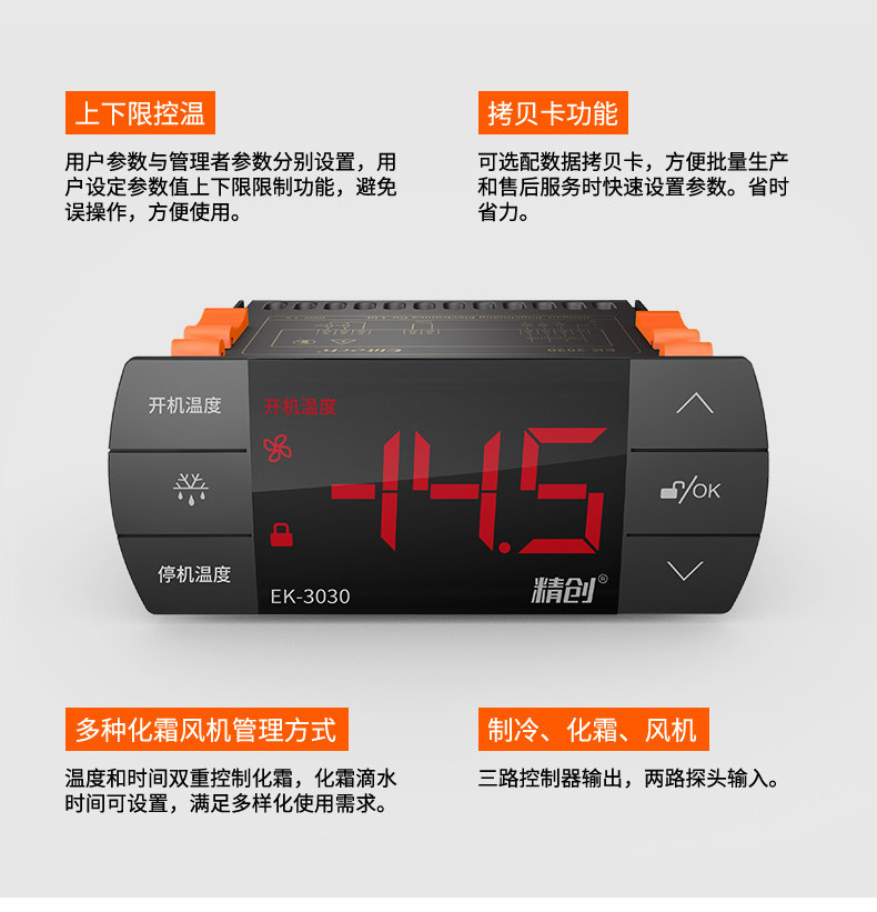 Jingchuang EK-3030 touch screen full waterproof thermostat refrigeration fan defrosting temperature controller STC9200 upgrade
