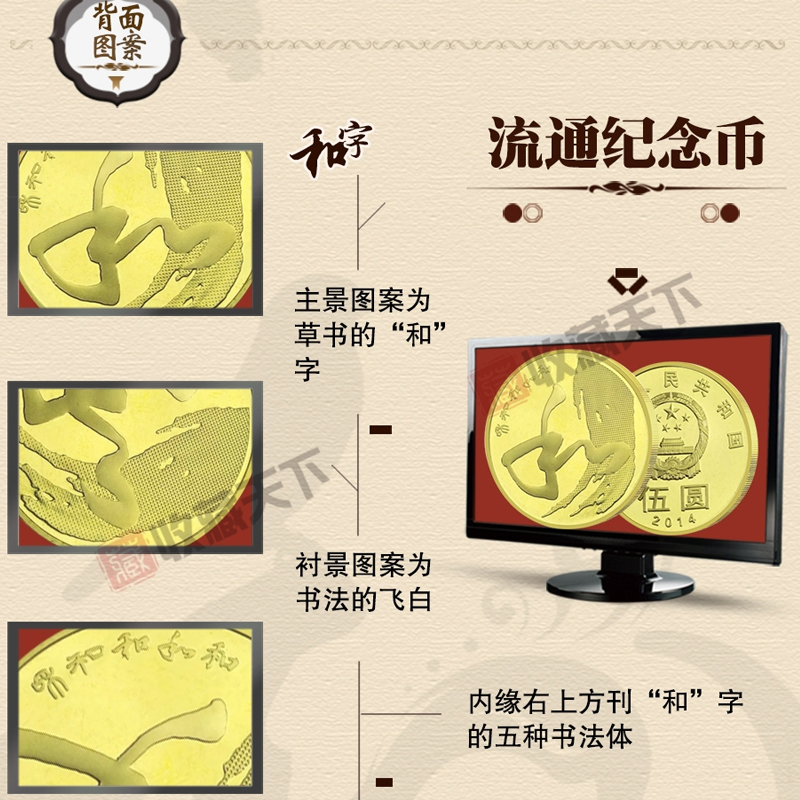 2014 and Word Calligraphy Commemorative Coins (straw books) and 1-and 5-five large full sets of gift boxes 2014 and calligraphy commemorative coins (straw books) The whole volume of 40 pieces