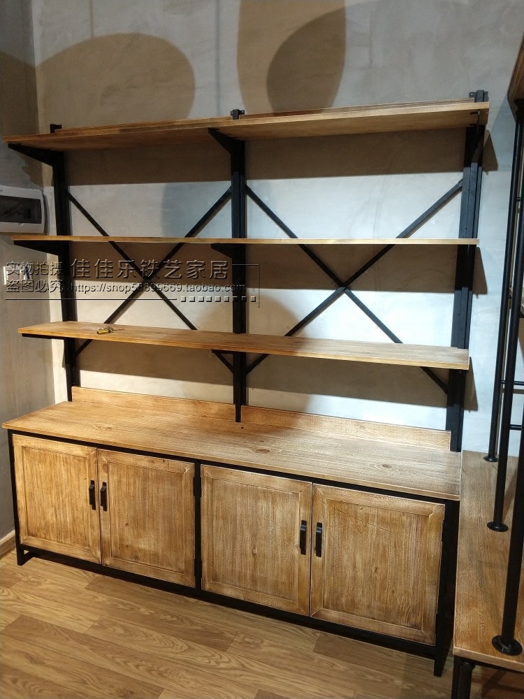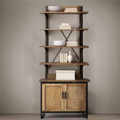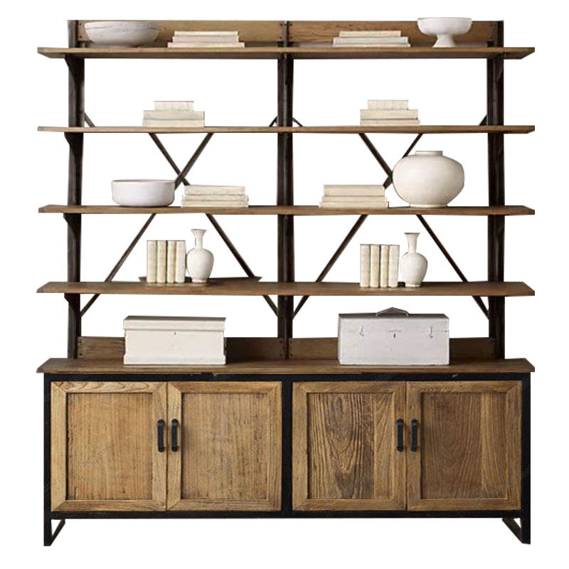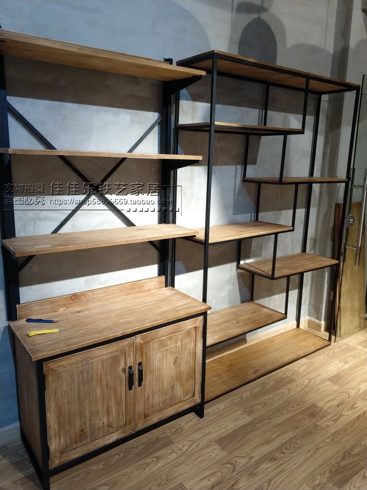 Loft American retro rack solid wood wrought iron bookshelf shelf floor industrial wind office bookcase storage cabinet
