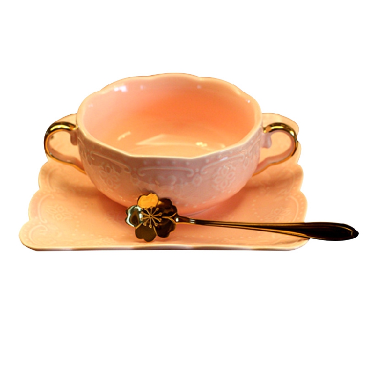 Princess pink Phnom Penh binaural bowl European relief ceramic milk soup bowl Soup cup Dessert bowl