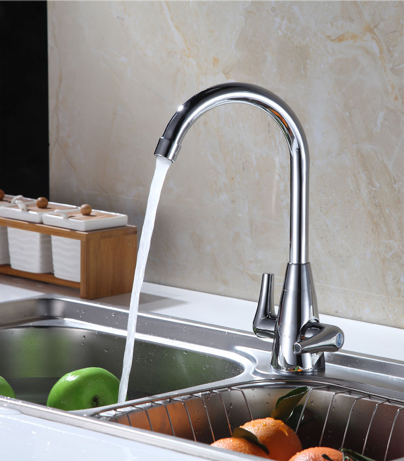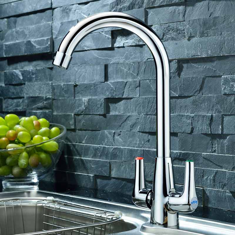 All-copper double switch kitchen wash basin hot and cold water faucet single hole vegetable basin sink hot and cold double cut kitchen faucet