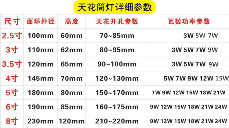 Imported chip -2 5 inch 3W white light imported chip -2 5 inch 3W warm light imported chip -2 5 inch 5W white light imported chip -2 5 inch 5W warm light imported chip -3 inch 3 inch