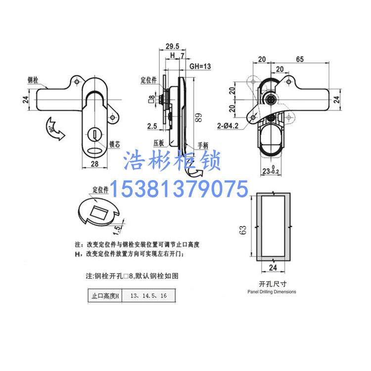 Distribution cabinet plane lock distribution box lock MS843-1 cabinet main shell lock distribution cabinet door lock