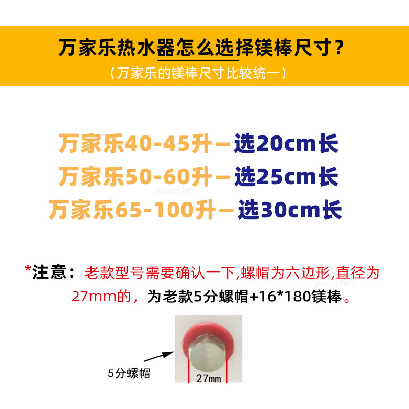 Length 20 Magnesium rod with copper nut (40-45L) Length 25 Magnesium rod with copper nut(50-60L) Length 30 Magnesium rod with copper nut(65-100L) Length 20 Magnesium rod
