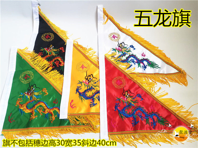 Xianjia LingQi Five Color Flag Taoist Ling Banner Five Color Ling Flag Five Dragon Flag Five Elements Flag Ling Flag Base