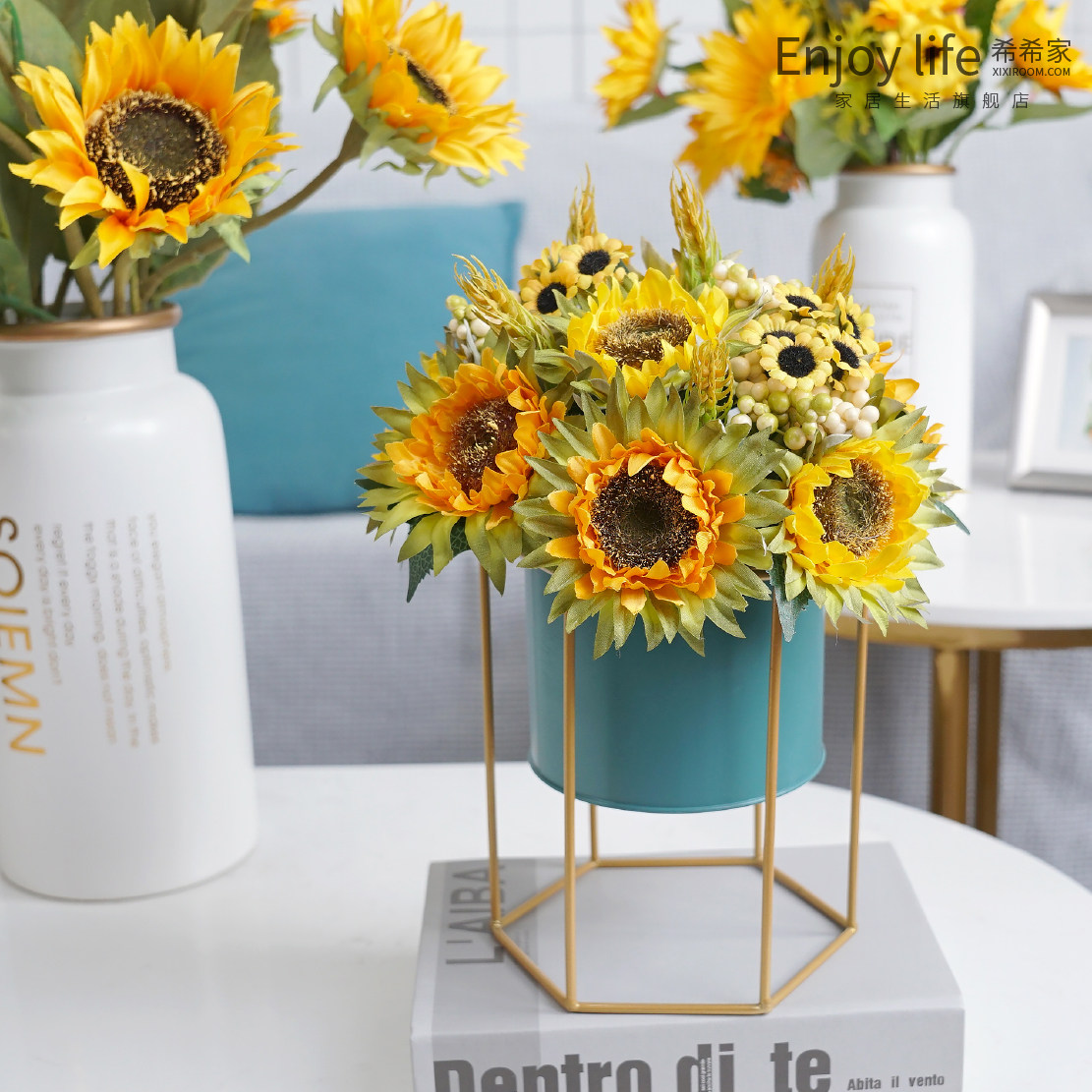 Khaki ginger Bright yellow apricot Lemon yellow orange 10 sunflowers 1 bunch of sunflowers 1 bunch of basket Sunflowers 1 bunch of tin bucket Sunflowers 1 bunch of 6-sided flower vase Sunflowers 1 bunch of lantern-shaped flowers