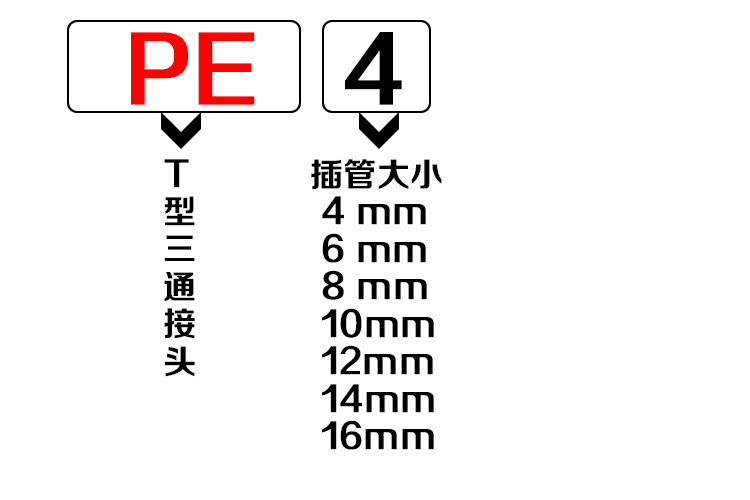 Dessert-powered PE6 PE12 tracheal quick plug-in head PE4 PE8 PE10 PE10 T-type three-way plastic