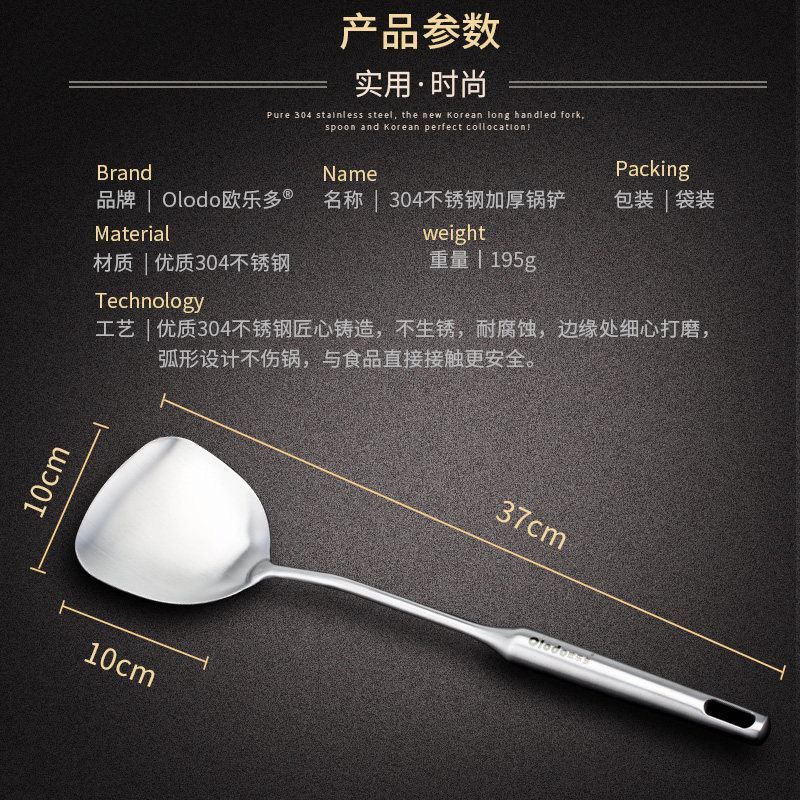 Oredo spatula 304 stainless steel kitchen frying spatula Household kitchen utensils long handle heat insulation non-stick pan stir-fry spatula