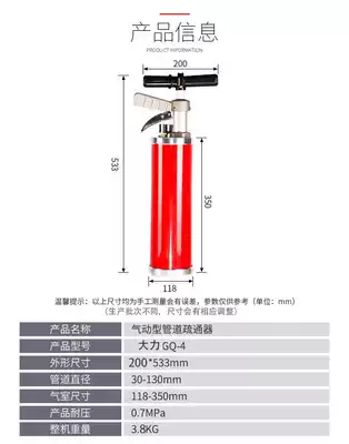 Beijing Dali GQ-4 one gun through high pressure pneumatic sewer dredger household toilet floor drain dredging tool