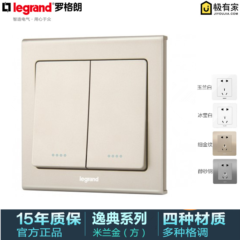 TCL Legrand Yadian Square Milan Gold Two-Position Single Control with Fluorescent Switch Two-Open Single Control Double Single Control 86