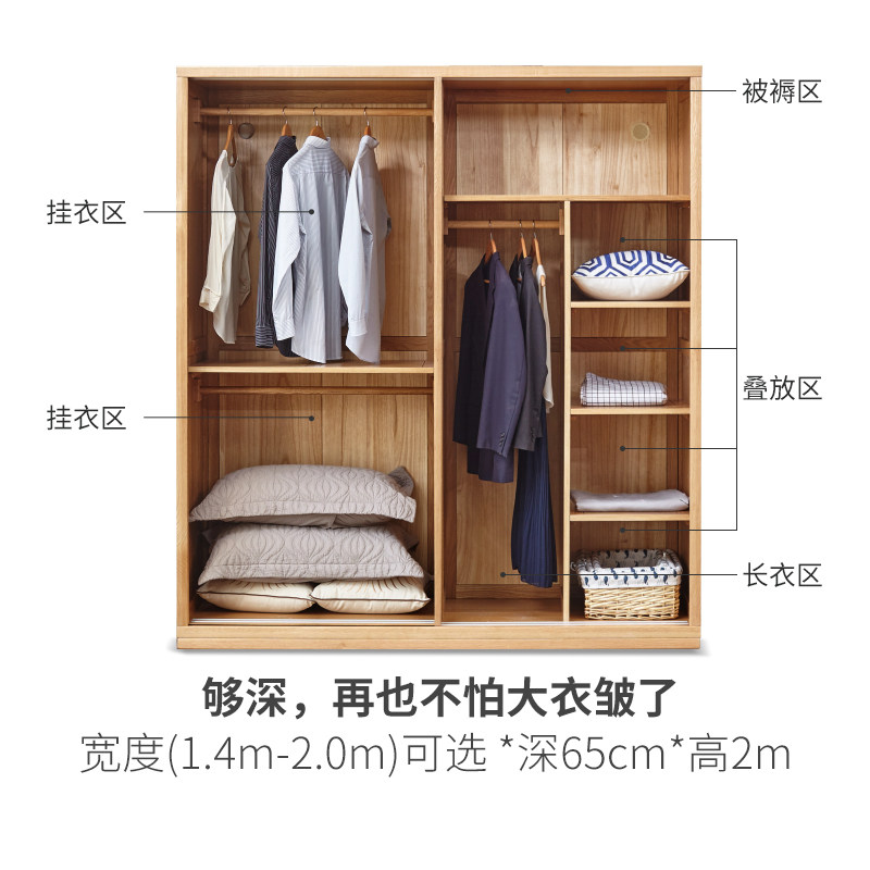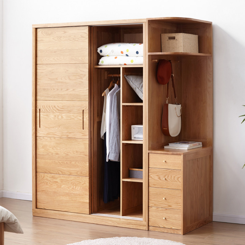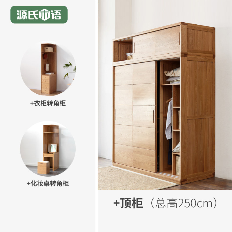 Genji wood language Solid wood sliding door large wardrobe Nordic oak sliding door wardrobe Modern simple sliding door wardrobe customization