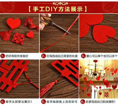 Wedding Wedding supplies Wedding room decoration DIY creative decoration Non-woven happy word peach heart charm pendant