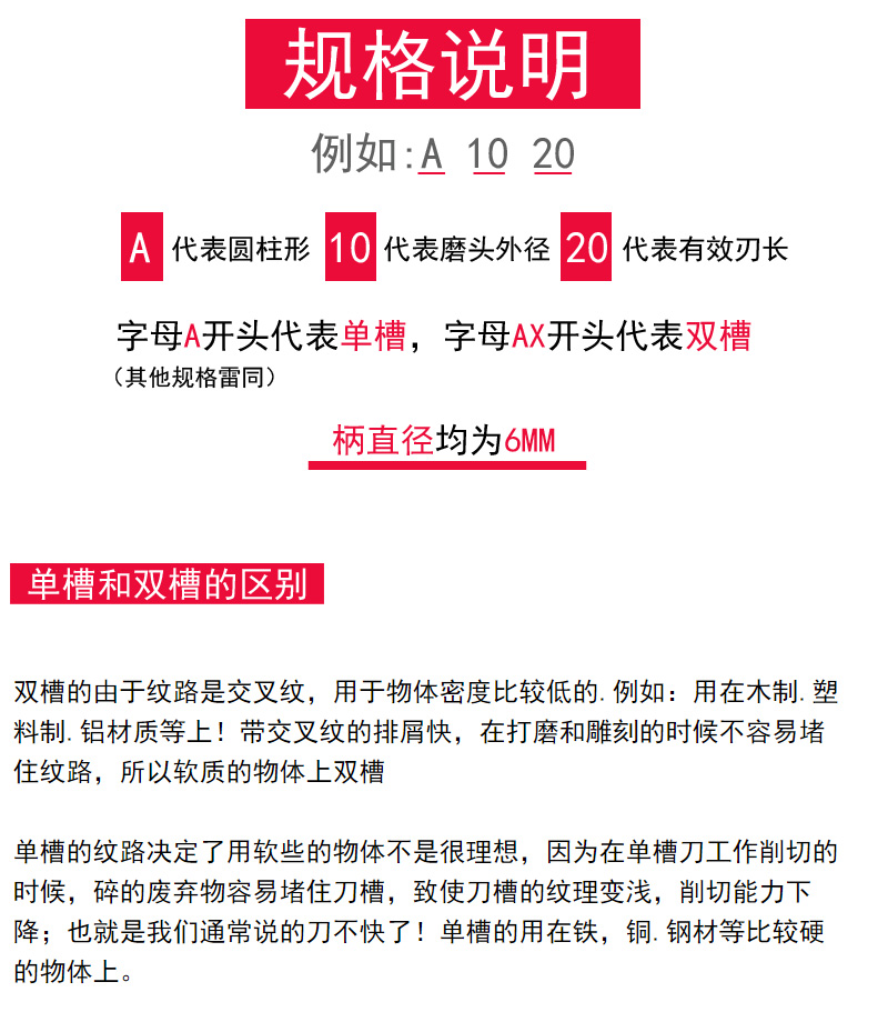 Carbide rotary file Tungsten steel grinding head Root carving woodworking milling cutter Metal stainless steel grinding single sink handle 6mm