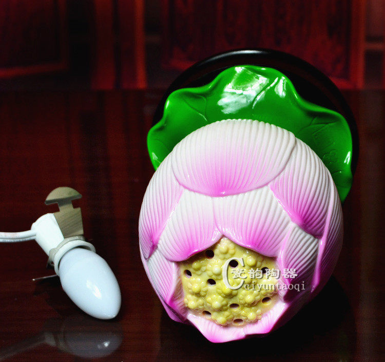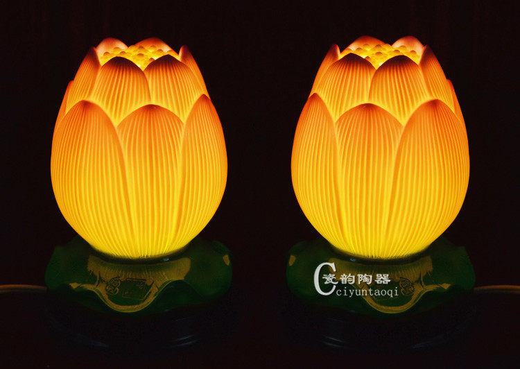Ceramic hand colored lotus lamp Buddha for lamp Baolian lamp Buddha Hall Supplies LED lamp Buddha front for Buddhist lamp handicraft ornament