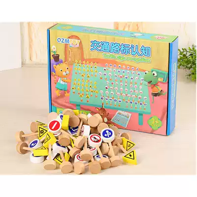 Wooden road signs Early education Cognitive kindergarten Table games Building blocks Engineering car Domino teaching toy Traffic signs