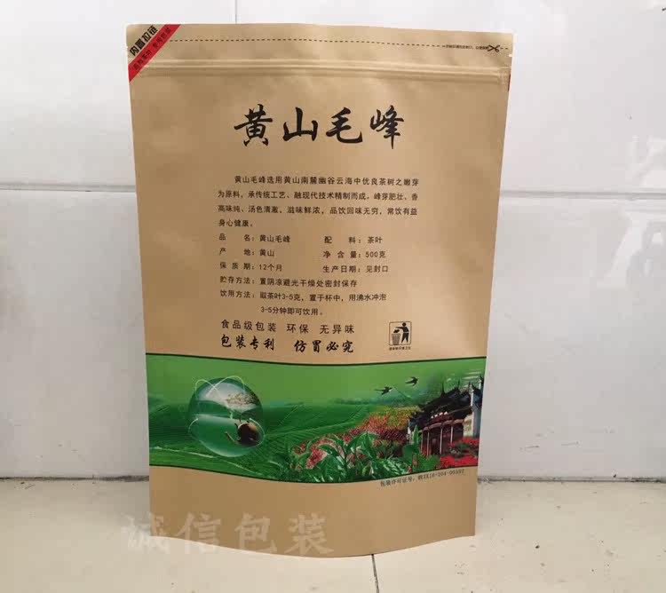 500 gr Self-proclaimed Laced Kraft Kraft Yellow Mountain Woolen Peak Tea Packing Anhui Tea Thickened Aluminum Foil Tea Bag