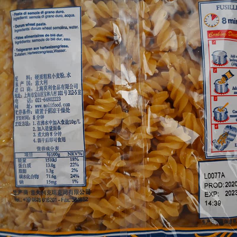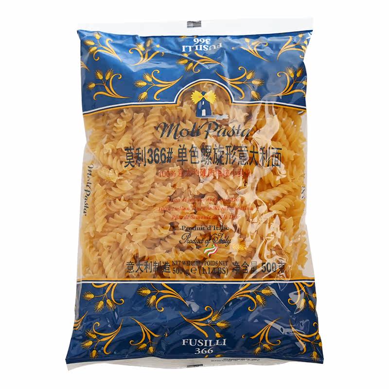 Imported Molly 366 monochromatic spiral pasta 500g screw pasta spaghetti Pink Triangle Bean Can 400g
