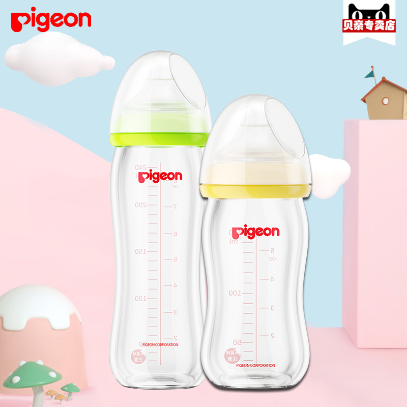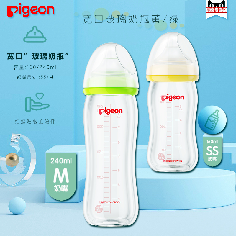(Gift handle) Pigeon shell wide-caliber glass bottle 240ml 160ml set
