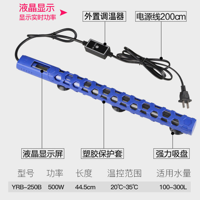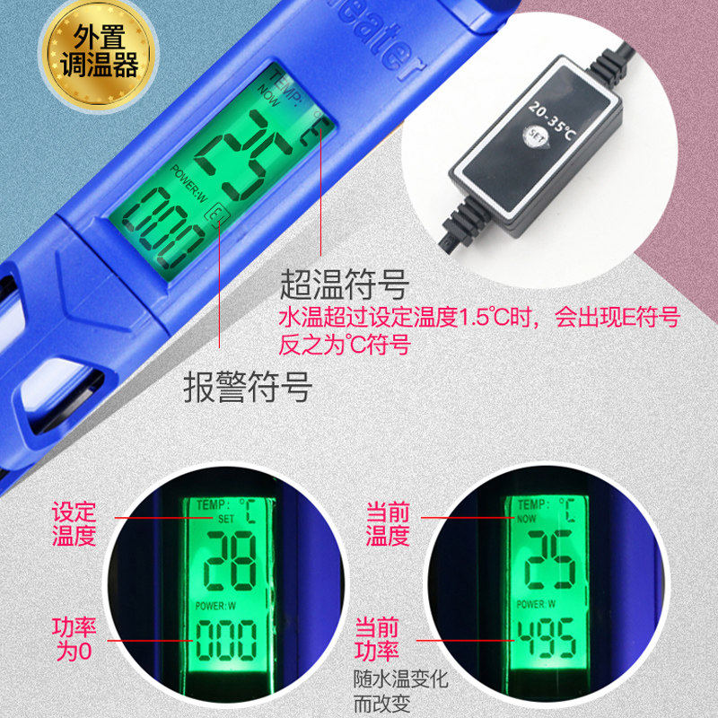 Frequency conversion heating rod (built-in temperature adjustment button) Blue Frequency Variable Heating Bar (external thermostat) Blue 1000W Intelligent Dual-tube Quartz Digital Distance Distance Power Disconnected