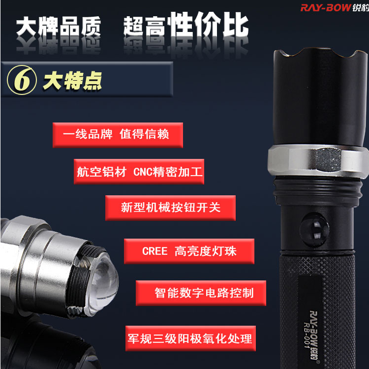 Ruby Leopard 001 Ultra bright light zoom flashlight small rechargeable imported LED outdoor lighting ride distant king