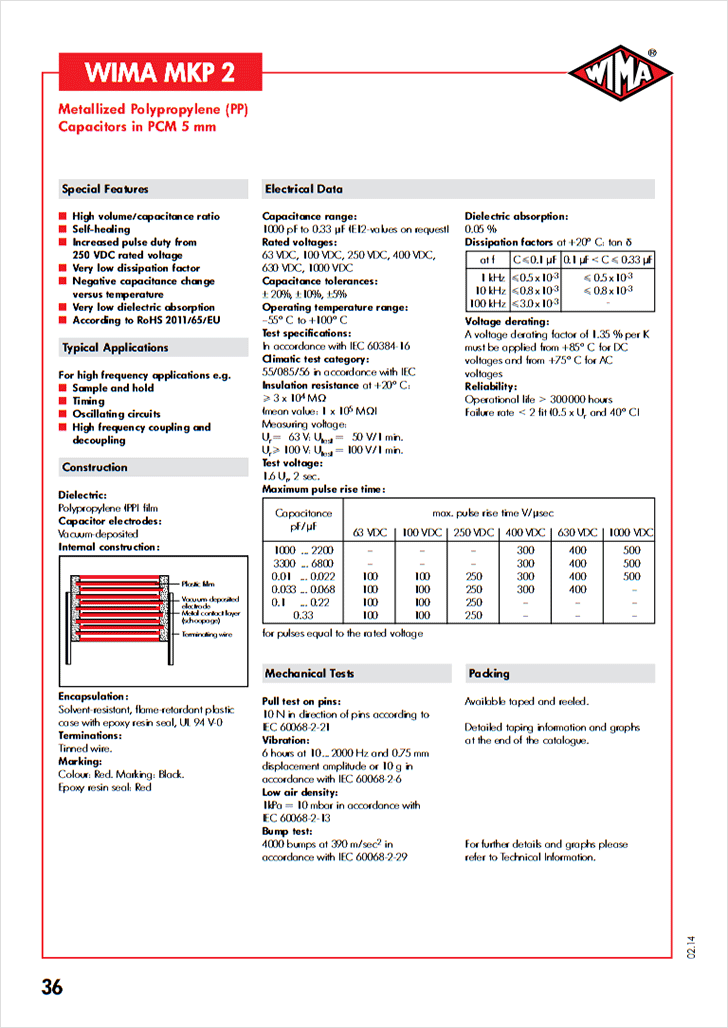 10n 630V MKP2 series WIMA 0 01uF 103 Germany imported electrodeless film capacitor