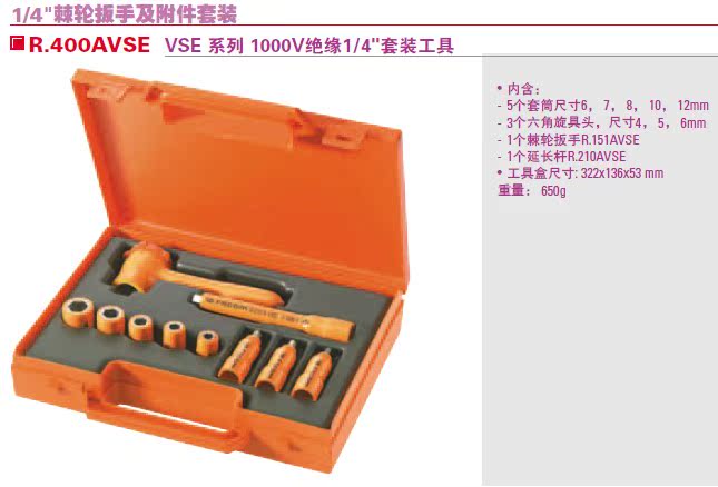 FACOM TOOLS VSE SERIES 1000V INSULATION 1 4 TOOL SET 10 PIECES R 400AVSE