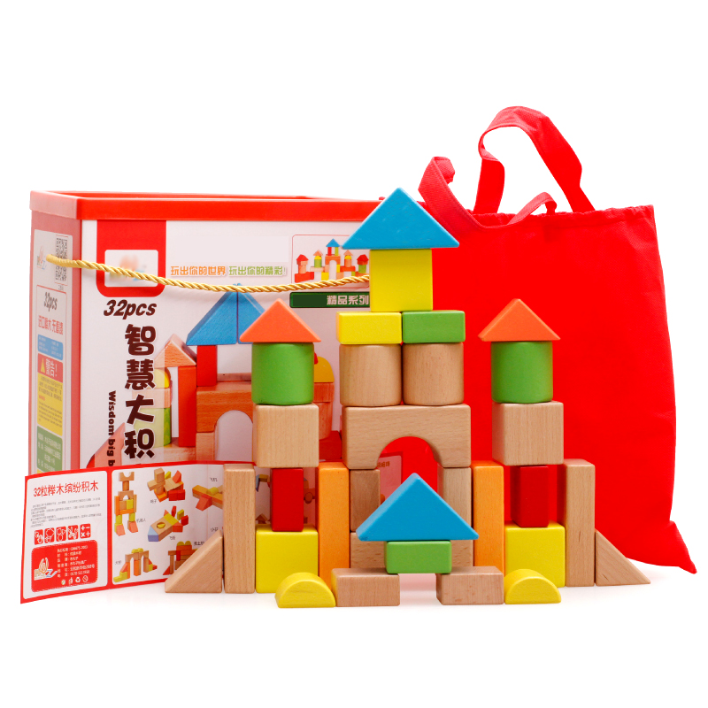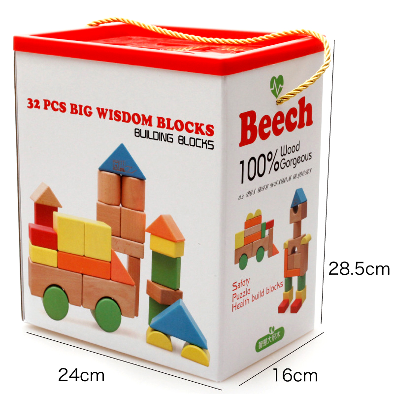 32 children of kindergarten infants with large particles of high end beech wood blocks 1-2 - 3 - 5 years old toys