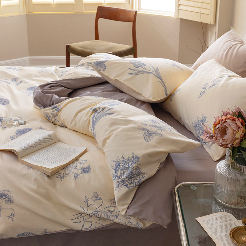 Fan-style small fresh pure cotton four pieces full cotton field garden wind quilt cover sheet 1 8m bed hat student dormitory Three sets