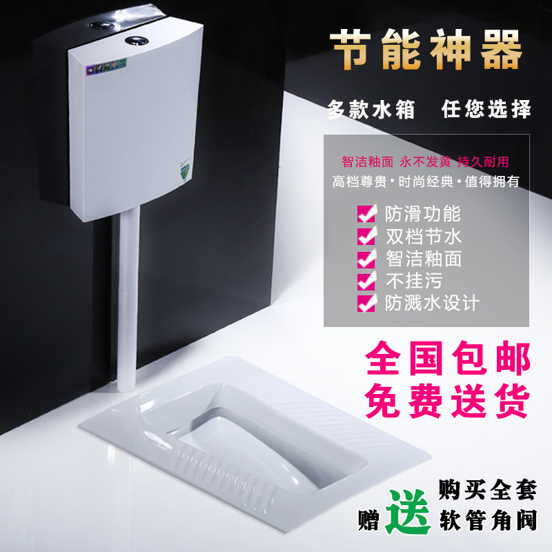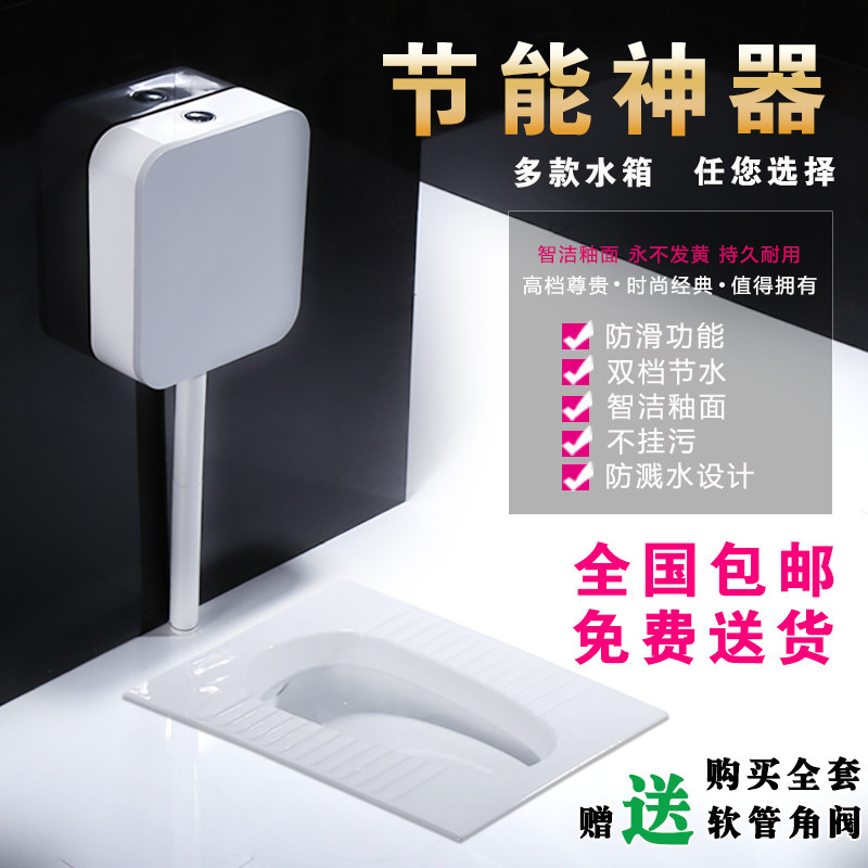 Ceramic squatting toilet toilet large urinal water saving squatting pit squatting toilet deodorization anti-blocking ultra-thin water tank set