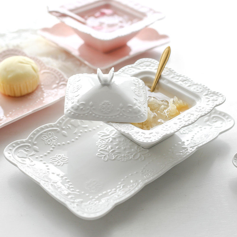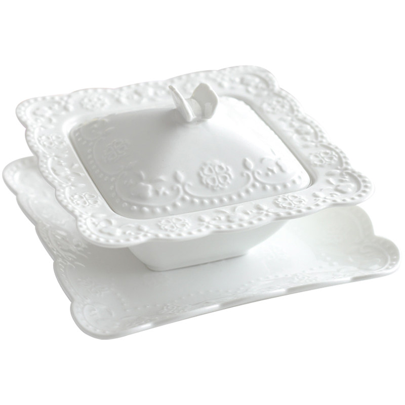 Square bowl with lid Bird's nest bowl Embossed bowl Shark fin cup Silver fungus sugar water bowl Pudding Yogurt small bowl