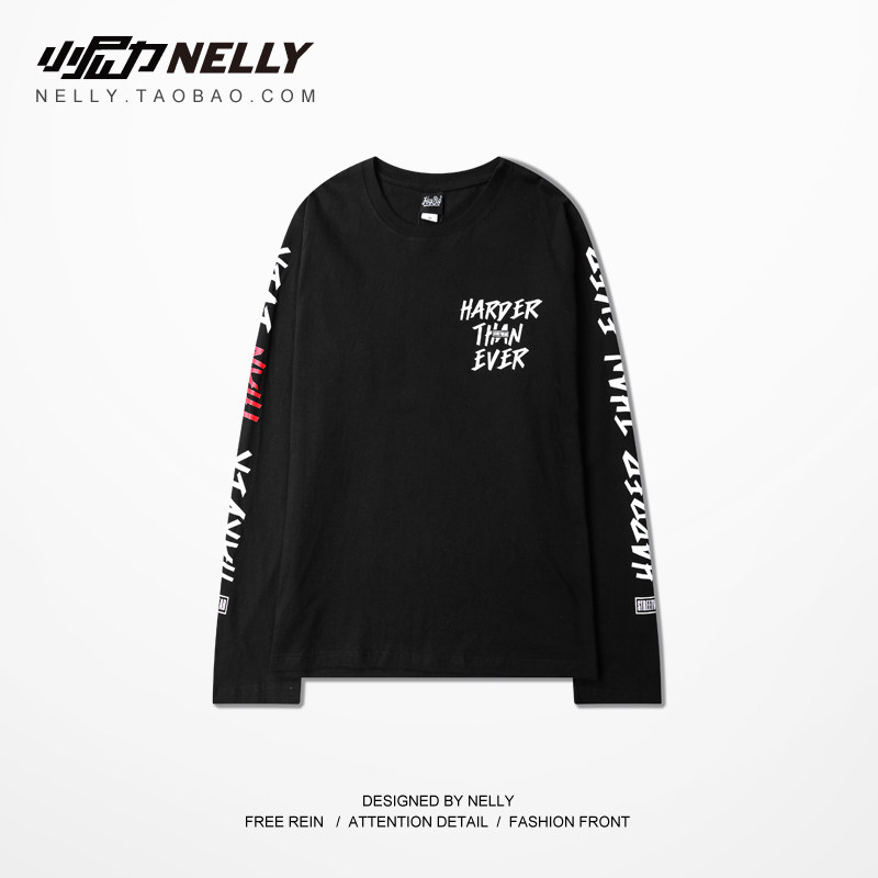 Day Series Tides Original Juku Graffiti Printed High Street Dead Flying Skateboard Korean Prints in Korean version for men and women Long sleeves T-shirt round tide