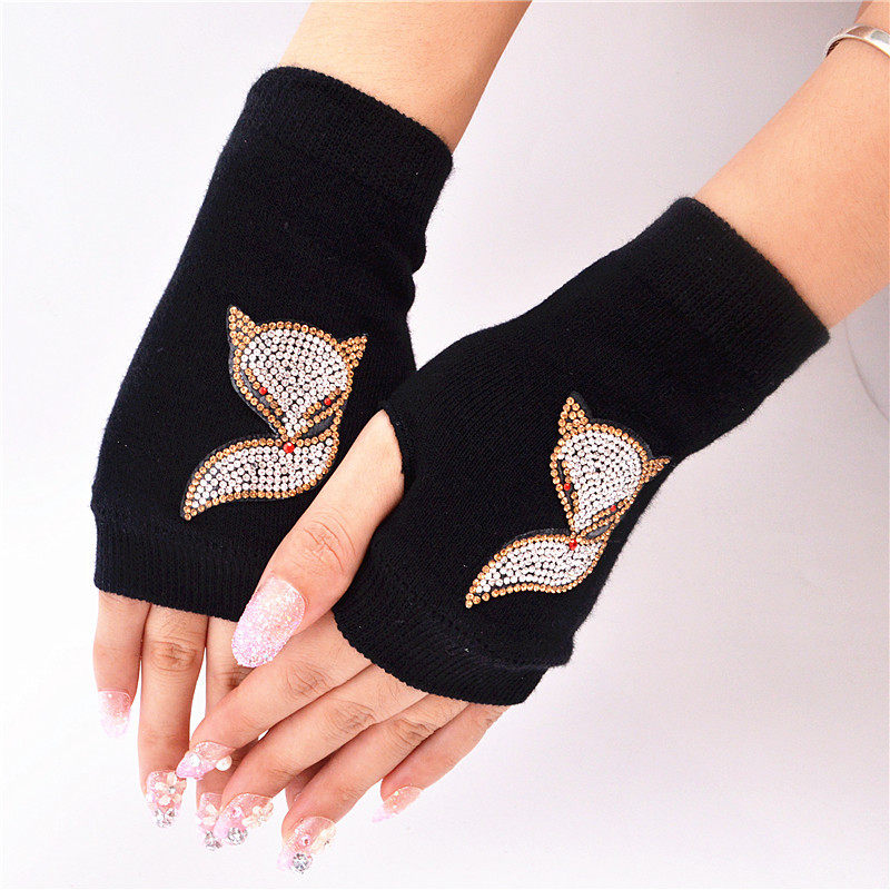 New Non-Mainstream Rivet Control Non-Printed Finger Short Gloves Outdoor Knitted Black Gloves