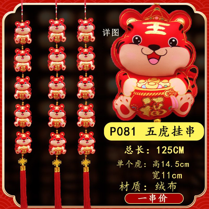 2022 New Year's hanging of lanterns The lantern Tiger year cartoon Cartoon Sheng Fu Character Qiao Relocating the Festive Entrance to the Decorative Size Pendant