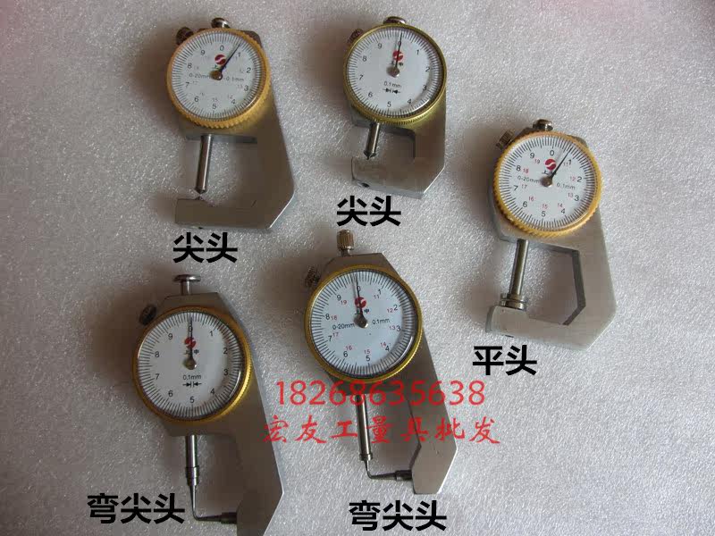 Shanghai Upper Shen Bent Pointed Thickness Gauge 0-10 0-20mm pipe wall thickness gauge leather film thickness gauge