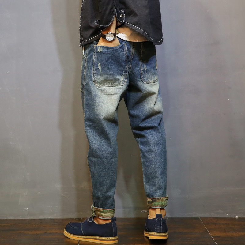 Boomer Jeans Men Loose Large Size Spring Hallen Bouquet Foot Small Foot Retro Pants Trousers Long Pants Spring Autumn