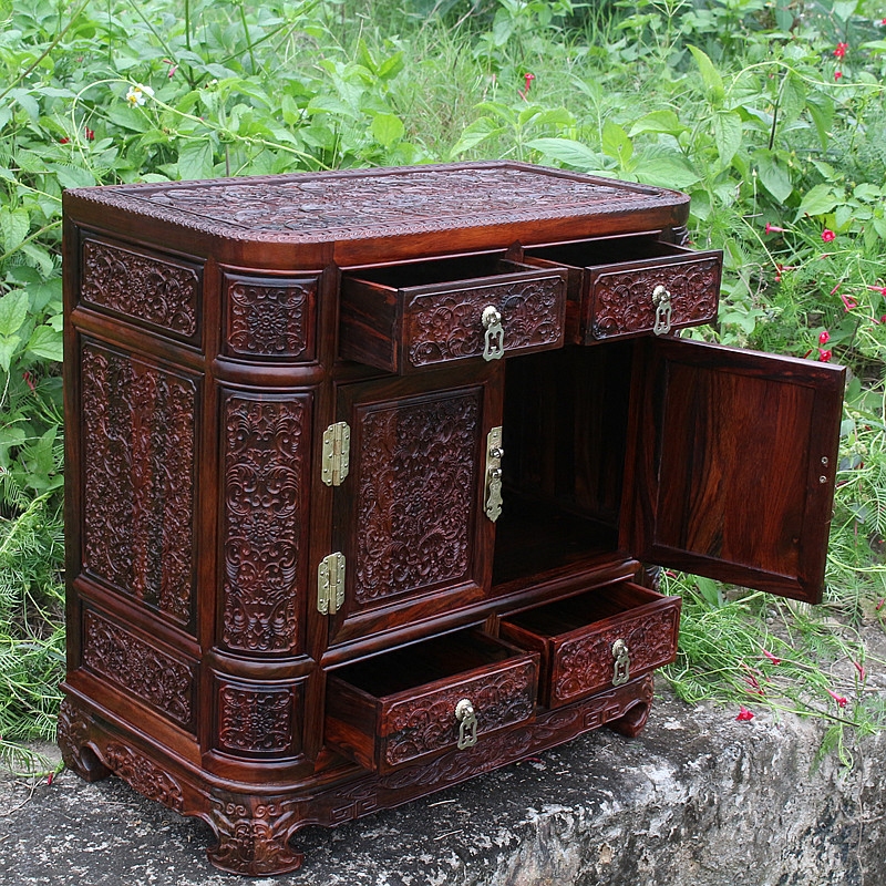Red Wood Dragon Cabinet Laos Big Red Acid Branches Multitreasure Wood Carved Furniture Swing Piece Jewelry Box First Decorated Case Bed Head Cabinet Hem