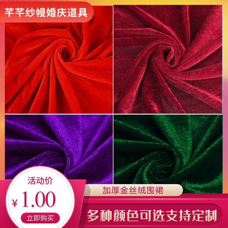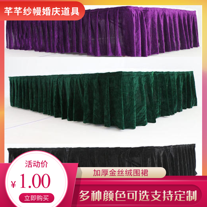 Wedding Celebration Props Gold Velvet Apron Skirt Side Stage Car Background Yarn Mantle mantle Mantle Apron Hotel Conference Room Table Cloth Apron