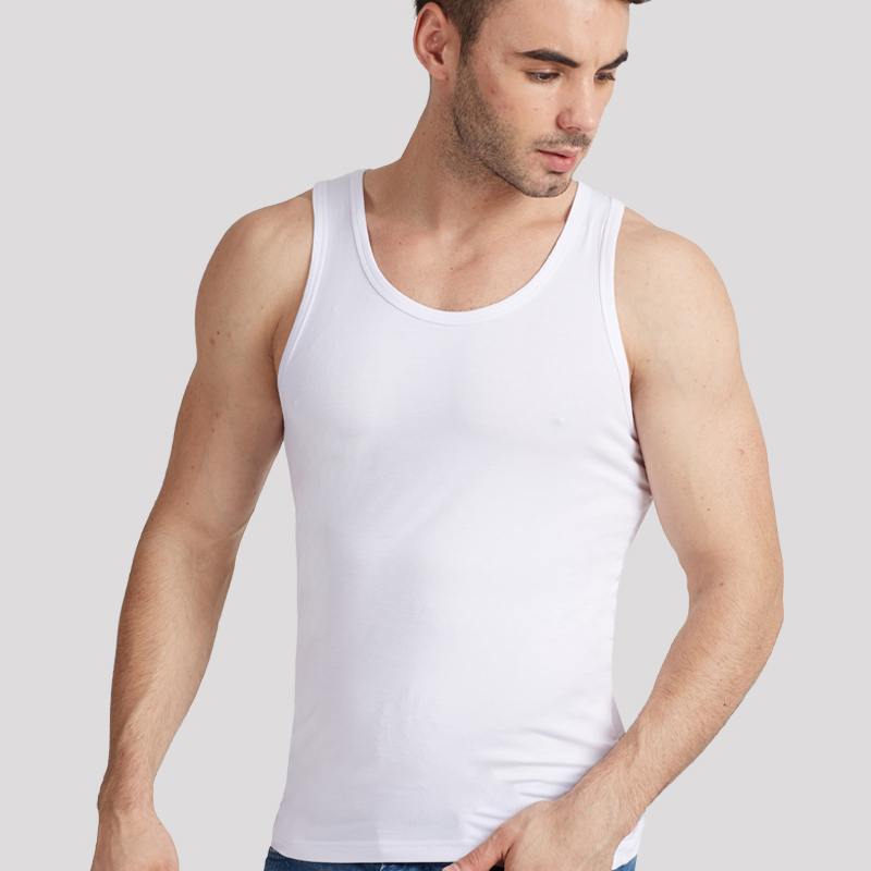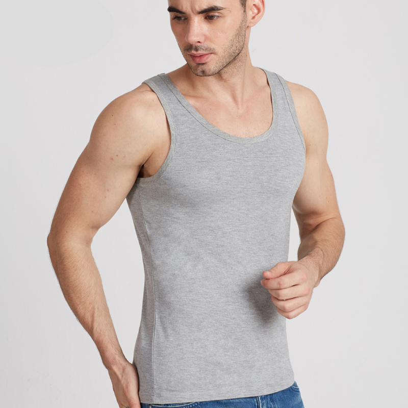 Men's solid color cotton slim-fit vest Tight sports fitness base sweat wide shoulder stretch vest Men's summer tide